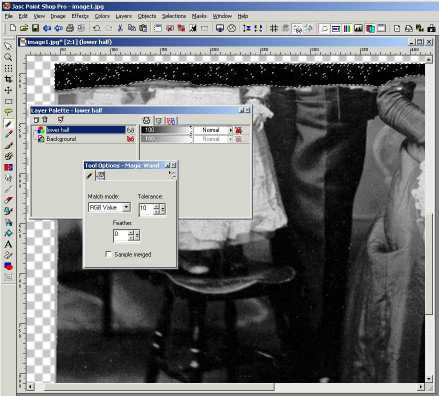 The next step in repairing the picture was to make a rectangular selection